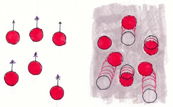 ['small circles' are the top of 'heads' and the little eyelashes represent their orientation ]